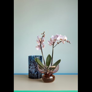 Smuk glasvase fra Hübsch. Sæt farve på dit hjem med denne smukke glasvase. Vasen har en god tyngde, hvilket bevidner om den gode danske kvalitet. En vase der bringer liv til rummet både med og uden blomster.