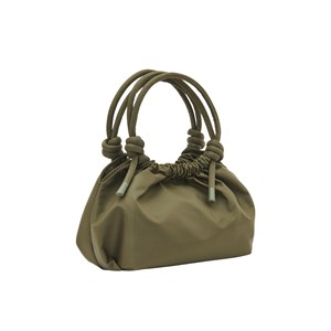 Mini håndtaske med magnetlukning og knyttet detalje på håndtagene. Tasken har et stort rum med en inderlomme.