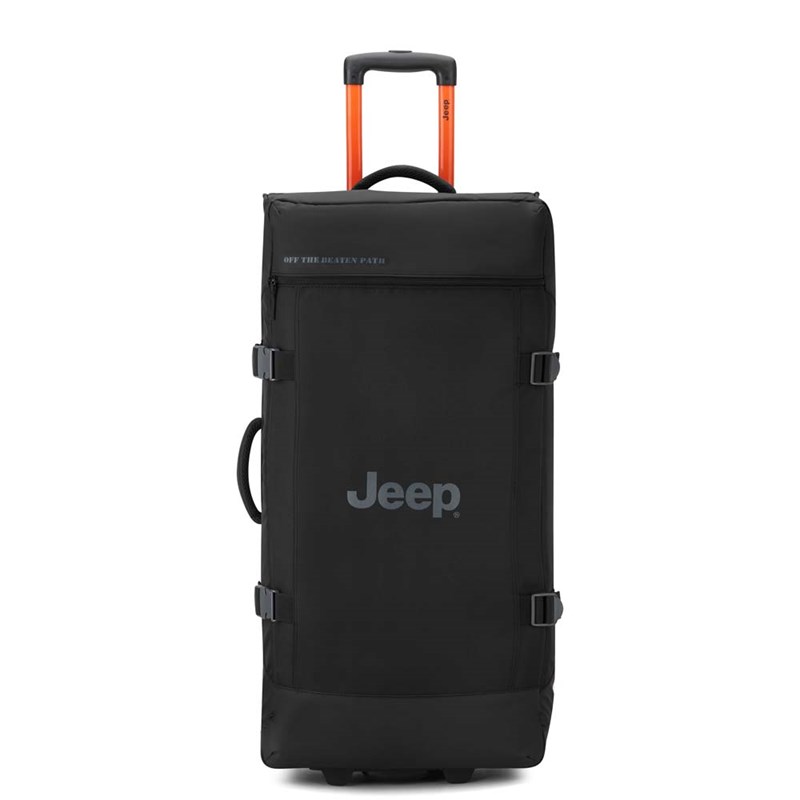 Jeep®'s lækre, bløde trolleyrejsetaske i delvist vandafvisende materiale og med smart orange kontrastdetaljer er en robust og utrolig praktisk rejsekammerat! Med justerbare spænder til at tilpasse størrelsen og to terrængående hjul, er denne taske klar til alle eventyr. Den er nem ½du transporterer din bagage. Fronten byder på 2 lynlåslommer til hurtig adgang, mens bagsidens kick-plate og solide støtter beskytter tasken og løfter den over jorden i udfordrende terræn. Indvendigt er tasken fuldt foret med organiserede rum og stropper, så du altid har styr på din bagage. Plus, 3 års verdensgaranti sikrer, at du er dækket, uanset hvor rejsen går hen.