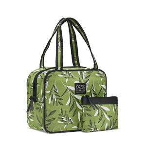 2-delt Karen toilettaske i cremefarvet magnolia print, økologisk bomuld og med for af rPET. Toilettasken er fremstillet i økologisk bomuld, som kan maskinvaskes. Sættet består af en makeup pung/organiser som kan bruges til f.eks øresnegle og ladere når du er på farten, og den rummelige toilettaske kan passe på alle dine produkter. Begge i magnolia print, og tasken med Karen label på fronten. Tasken er lavet i økologisk bomuld og indeholder fire indvendige lommer. Foret er ligeledes quiltet, hvilket giver tasken en ekstra beskyttelse mod hårdhændet behandling. To hanke gør at du kan hænge tasken op og samtidig have et super godt overblik. Bliver sættet beskidt kan det vaskes i vaskemaskinen ved 30 grader. Tasken er stuffed i Danmark for at spare på co2 under fragten, en stor synder i vores fælles co2 regnskab. Foret er lavet af plastikflasker, der igennem en proces genopstår som en lækker nylon, vi genbruger ca. 5 plastik flasker pr. sæt.