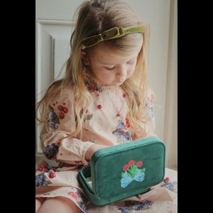 Sødt velour smykkeskrin med alle de perlesmykker, du kunne drømme om. Alle armbånd og halskæder er elastiske og velegnede til alle.