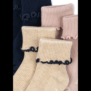Bløde ribsokker med behagelig stretch og en dekorativ flæsekant. En sød og nem garderobefavorit, der kommer i en praktisk 3-pak - perfekt til hverdagsbrug.