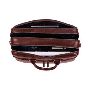 Klassisk herremappe fra Leonhard Heyden i en moderne britisk fortolkning. Fremstillet af fuldnarvet okselæder med blank finish. Denne moderne business taske har en god rumfordling med plads til 15" computer og 10" tablet. Tasken har gode organiser rum med plads til papir, pen og nøgler. Tasken kan bæres med håndtag eller den justerbare skulderrem i skind med canvas på indersiden. På bagsiden er der en strop, så man kan placere tasken på en kuffert,