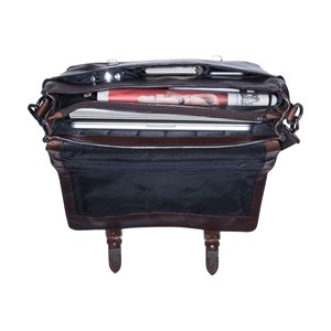 Casuel og sporty herremappe fra tyske Leonhard Heyden. Fremragende pull-up læder (fuldnarvet okselæder) med tofarvet effekt for et mere casuel og individuel udseende. Denne smarte business taske har en god rumfordling med plads til 15" computer og 10" tablet. Tasken har gode organiser rum med plads til papir, pen og nøgler. Tasken kan bæres med håndtag eller den justerbare skulderrem. På bagsiden er der en strop, så man kan placere tasken på en kuffert, mens der på forsiden er et organiser rum som åbnes med to trykspænder.