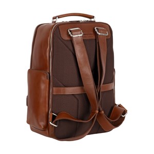 Klassisk rygsæk fra Leonhard Heyden i en moderne britisk fortolkning. Fremstillet af fuldnarvet okselæder med blank finish. Denne moderne business taske har en god rumfordling med plads til 15" computer og 10" tablet. Tasken har gode organiser rum med plads til papir, pen og nøgler. Tasken kan bæres med håndtag eller på ryggen med justerbare remme i skind med canvas på indersiden. Der er gode yder rum, blandet andet til drikkedrunk eller småting i det lille ydre rum.