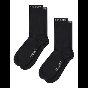 Wilfred er sportssokker i en tyk, elastisk bomuldsribstrik. De har mærkevarebogstaver påsyet i anklen og på sålen.