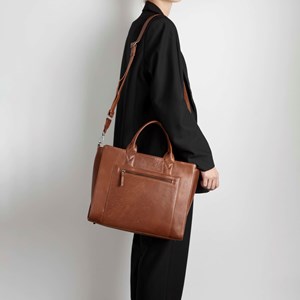 Raze Work Bag, Antique fra Markberg. Elegant arbejdstaske i vegatabilsk indfarvet læder, baseret på naturlige materialer. Tasken passer op til 15" PC. Indeholder et stort rum med god plads, 2 lommer, en lynlåslomme samt tre kreditkortholder. Tasken lukkes med lynlås. Udvendig er der lynlåslomme på fronten. To bærehanke samt aftagelig og justerbar skulderrem i skind. For: 100% bomuld.