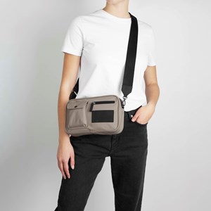 Darla Crossbody Bag fra Markberg er en praktisk crossbody taske som er produceret i 100% genanvendt polyester. Tasken er vandafvisende og lavet i et ekstra slidstærkt materiale. Tasken lukkes med lynlås og har en lille lomme og lynlåsdetaljer på fronten. Markberg logoet på fronten er lavet i vegansk silikone, hvor der ikke er brugt animalske materialer. Tasken foer er 100% genanvendt polyester.