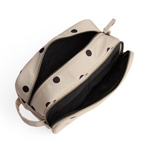 Care Toiletry Bag fra Markberg er produceret i 100% genanvendt polyester. Materialet er vandafvisende og slidstærkt. Toilettasken har to store lynlåsrumsopdelinger, der giver et fantastisk overblik over dine artikler. Dertil er der gode indvendige lommer og lynlåslomme, så du let kan organisere dine produkter. Til sidst er der to små inddelte rum i det ene lynlåsrum til praktisk opbevaring af mindre items, samt en kort hank i siden for nem håndtering, imens du er på farten. Perfekt til rejsen, weekendopholdet eller blot til dine hverdags produkter. Toilettaskens for er i 100% genanvendt polyester og så måler den 13,5 cm x 24 cm x 11 cm.