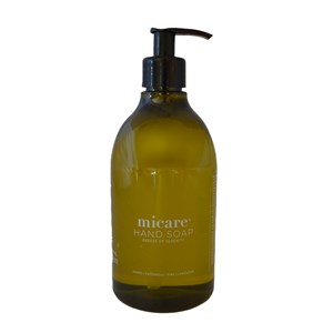 En ren og mild sæbe beriget med naturlige ekstrakter og æteriske olier. Denne nøje sammensatte kombination renser skånsomt og efterlader dine hænder velplejede, fugtede og med en diskret, naturlig duft. En lille luksus, der gør hverdagen lidt mere harmonisk. Denne delikate håndsæbe er til dig, der sætter pris på en mild og beroligende duft inspireret af naturens ro. micare håndsæbe er dermatologisk testet og fri for parabener, syntetiske dufte og konserveringsmidler. Den skånsomme formel gør den ideel til daglig brug og sikrer, at dine hænder efterlades rene og bløde, hver gang. micare produkter er skabt med omtanke for både dig og naturen – en harmonisk kombination af omsorg, kvalitet og ansvarlighed. Ingredienser: Aqua, Aloe barbadensis bladjuicepulver *, Cocamidopropyl betaine, Glycerin, Ammonium laurylsulfat, Sodium cocoyl glutamat, Sodium benzoat, Citrus limon skrælolie *, Citrus reticulata skrælolie *, Cymbopogon flexuosus olie *, Lavandula angustifolia olie *, Pinus sylvestris bladolie *, Pogostemon cablin bladolie *, Rosmarinus officinalis bladolie *, Caprylyl/capryl glukosid, Citronsyre, Coco-glucosid, Glyceryl oleat, Citral **, Limonen **, Linalool **. (*Økologisk, **Fra naturlig økologisk olie)
