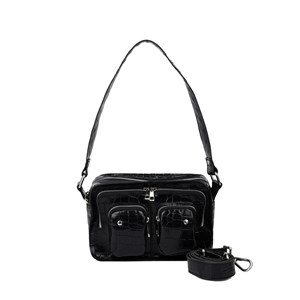 Ellie med et croco design i sort med sølvdetaljer. Har en skulderrem og en aftagelig læderrem. Tasken har ét hovedrum og to små lommer på forsiden.