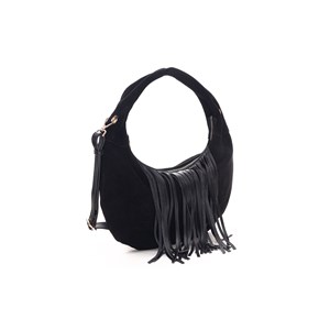 Mini Gabi Suede Fringe er en stilfuld skuldertaske i ruskind med lange frynser på fronten, der giver et unikt og legende udtryk. Tasken har ét hovedrum og lukkes med lynlås.