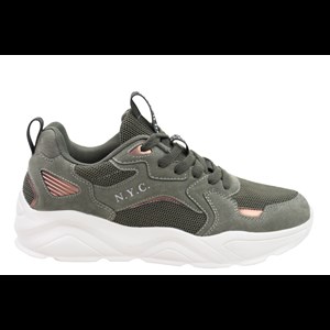 Lette, smarte kvalitets sneakers fra ”N.Y.C”. Overdelen er kombineret mesh / syntestisk læder, ydersål i soft og komfortabel materiale. Overdelen er med enkelte små tone i tone reflekser. Skoen har komfort indersål, soft, let og behagelig ydersål. Chunky sneakers med snørebånd i lækker design og kvalitet. Passer til alt lige fra shorts, kjoler, jeans eller joggingtøj.