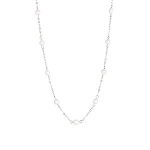 En let og dekorativ halskæde med små perler fordelt langs kæden, som giver et blødt og naturligt udtryk. De fine detaljer og de diskrete mellemled skaber et smukt helhedsindtryk, der tilfører et feminint præg uden at virke tungt. Halskæden er nem at style og kan bæres alene for et enkelt look eller kombineres med andre kæder for et mere personligt udtryk. Et smykke, der passer lige godt til hverdagen som til særlige anledninger.
