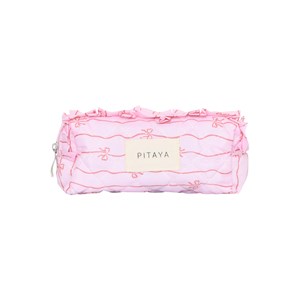 Tilføj et feminint touch til din hverdag med denne fine lille makeup taske. Den er i et yndigt sløjfemønster og en blød, lyserød nuance. De små flæsedetaljer langs lynlåsen giver et legende og romantisk udtryk, mens størrelsen gør den perfekt til at opbevare makeup, hårspænder eller andre småting på farten.