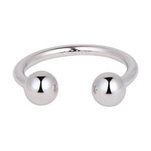 En moderne ring med to blanke kugler, der giver et enkelt og harmonisk udtryk. Den åbne form og den glatte overflade fremhæver ringens rene linjer og giver et stilrent look, som er let at bære. Ringen er flot alene, men kan også sammensættes med andre ringe for at skabe et mere personligt udtryk. Et smykke, der nemt kan styles til både afslappede og mere pyntede outfits.