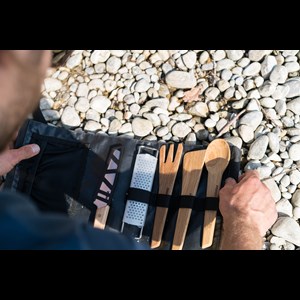 Primus CampFire Prep Set er et praktisk lille madlavningssæt der gør tilberedningen af et godt måltid udendørs til en leg. Sættet indeholder en 12 cm bålkniv, et rivejern i rustfrit stål, samt en slidstærk spatel, gaffel og ske af eg. Alt kommer pænt pakket sammen i en pose der har en yderside i slidstærk G-1000 og en inderside i PU-behandlet nylon, der er let at holde rent. Når redskaberne skal bruges folder man bare posen ud og lægger den frem eller hænger den op, så er det hele klar til brug.