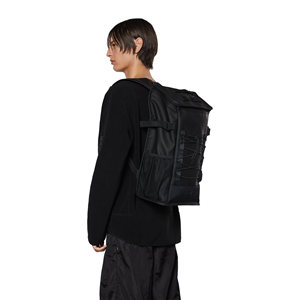 Den funktionelle Trail Mountaineer Bag har et stort hovedrum, polstret laptoplomme og flere lettilgængelige lynlåslommer. Det sporty look fortsætter med tre stropper i siderne, som kan justeres for at komprimere tasken og holde indholdet på plads. Den vandafvisende taske har desuden praktiske elastikker til udvendig oppakning, en meshlomme til din vandflaske samt polstrede skulderremme med justerbar brystrem, som giver en bedre pasform. Trail Mountaineer Bag er fremstillet i Rains’ vandafvisende signatur PU-materiale, som er designet til at være stærkt og holdbart med en glat finish.