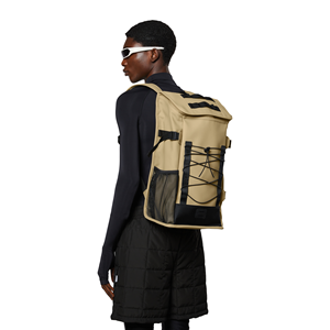 Den funktionelle Trail Mountaineer Bag har et stort hovedrum, polstret laptoplomme og flere lettilgængelige lynlåslommer. Det sporty look fortsætter med tre stropper i siderne, som kan justeres for at komprimere tasken og holde indholdet på plads. Den vandafvisende taske har desuden praktiske elastikker til udvendig oppakning, en meshlomme til din vandflaske samt polstrede skulderremme med justerbar brystrem, som giver en bedre pasform. Trail Mountaineer Bag er fremstillet i Rains’ vandafvisende signatur PU-materiale, som er designet til at være stærkt og holdbart med en glat finish.