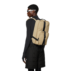 Trail Rucksack forener rene, geometriske linjer med webbing-detaljer, som giver en sporty æstetik. Den vandtætte rygsæk er bygget op omkring to hovedrum: et stort rum bagtil med laptoplomme og en lynlåslomme samt en stor forlomme – begge med coated lynlås. Det sporty look understreges ved hjælp af en kompressionsstrop foran samt to kompressionsstropper i siderne og to forneden. Designet fuldendes med hank foroven, justerbare, polstrede skulderremme, en brystrem og polstret ryg.