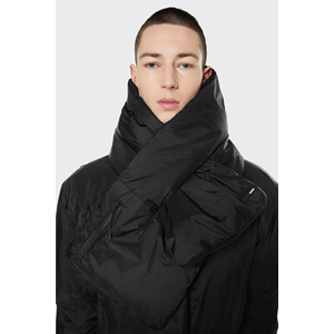 Rains Padded Nylon Scarf er et polstret nylontørklæde som er et perfekt tilbehør imellem sæsonerne. Tørklædet har en slids, der er nem at binde, hvilket skaber et mere skulpturelt look. Designet indeholder også en lynlåslomme til småting og er fleeceforet for ekstra varme og komfort. Rains Padded Nylon Scarf er lavet af Rains' sprøde og lette nylon med en luksuriøs bagsidebelægning og blød mat finish.