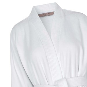 Rosemundes bløde morgenkåbe i 100% økologisk bomuld med bindebånd i taljen og to lommer foran.