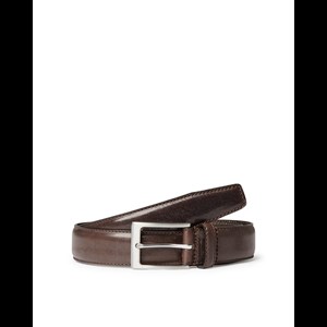 Klassisk herrebælte i ægte læder med stikning fra SADDLER. 35mm bredt med spænde i børstet sølvfinish. Produceret i Italien. Egner sig til både business, jeans og casual brug. Den høje kvalitet på læderet gør at det kun bliver flottere med tiden. Bæltelængden er målt fra bæltespændet til det midterste af de 5 huller.
