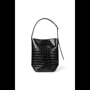 Sækketaske med justerbar skulderrem. Bar-lukning på indersiden. Metalbeslag i form af det ikoniske ø på skulderremmen. Præget logo på forsiden. Påsyet lomme på indersiden. Sølvfarvede metalbeslag. Hovedmateriale af koskind.