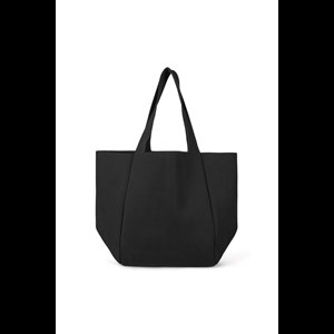 Ribstrikket taske. Åben top. Trykt logo på forsiden. Aftagelig lynlåslomme på indersiden. Hovedmateriale fremstillet af 100 % genanvendt polyester.