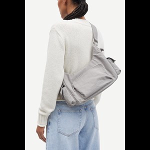 Skuldertaske fra Samsøe Samsøe med justerbar rem. Tasken er let polsteret og har lynlåslukning øverst, lommer med trykknapper på siderne, lynlåslomme med logo foran og lynlåslomme indvendigt samt sølvfarvede metaldetaljer. Tasken kan også bæres som crossbody.