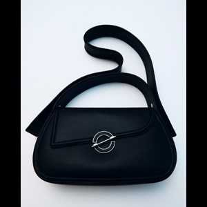 Skuldertaske med håndtag og justerbar, aftagelig skulderrem. Metal lukning på forsiden i form af det ikoniske ø. Logo-mærket påsyet lomme på indersiden. Sølvfarvede metalbeslag. Hovedmateriale fremstillet af genanvendt læder.