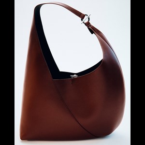 Skuldertaske med buet skulderrem. Bar-lukning på indersiden. Metalbeslag i form af det ikoniske ø på skulderremmen. Lomme med logo på indersiden. Sølvfarvede metalbeslag. Hovedmateriale fremstillet af genanvendt læder.