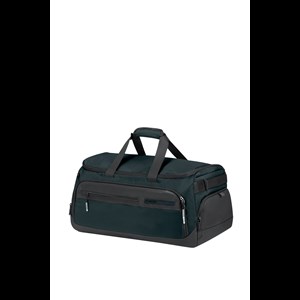 Biz2go rejsetaske fra Samsonite har skulderremme så den også kan bruges som rygsæk, 2 frontlommer, lomme til sko eller vasketøj, lavet af genbrugte pet flasker, 2 års begrænset garanti.