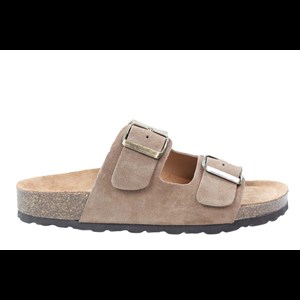 Sandal i ruskind med med komfortabel indersål i ægte læder og samt kork mellemsål, hvilket betyder ekstra stødabsorbering og super komfort. Der er 2 justerbare remme, således de kan tilpasses de fleste fødder og slidsålen er gummi.
