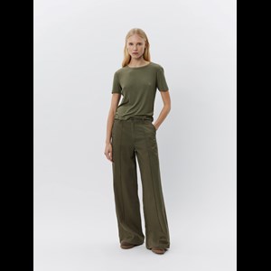 Viscose rib T-shirt med afrundet udskæring. Korte ærmer og en afslappet pasform. Lavet af 95% viskose og 5% spandex.