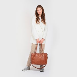 Khloe Work Bag er en arbejdstaske med masser af plads, da den ekstra ordinært har hele 3 hovedrum, hvori det midterste rum fungerer som et vatteret computerrum med plads til en MacBook Pro 16". De to andre rum er velegnet til dine mapper, papirer samt andre vigtige kontorartikler. Tasken har desuden en bred læderstrop, der gør det muligt for dig at have tasken på henover kroppen, mens de lange og feminine skulder hanke gør det muligt for dig at bære tasken på skulderen. Denne taske er ideel til en moderne og hårdtarbejdende kvinde, der ønsker en klassisk arbejdstaske, der kan bruges mange år frem. Feminine hanke, tre indvendige, lynlåslukkede lommer, udvendig, lynlåslukket lomme. Justerbar samt aftagelig læderstrop. Lynlåslukket hovedrum med vatteret computerrum, kompatibelt med en MacBook Pro 16": Højde: 24 cm. Bredde: 39 cm. Dybde: 3 cm. To åbne hovedrum med magnetisk lukning samt fire beskyttende metalnitter i bunden.