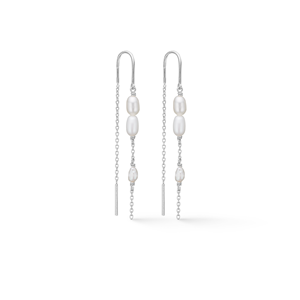Perma ørehængere med et let og elegant udtryk. Designet er inspireret af klare vintermorgener, hvor sollyset får iskrystaller til at glimte blidt. Tre bevægelige perler på kæden fanger lyset diskret og skaber en rolig, feminin bevægelse. Bær dem alene til hverdagen for et enkelt look, mix dem med små, diskrete øreringe for et personligt udtryk, eller kombiner med hoops og kæder til et mere markant lag-på-lag look om aftenen.