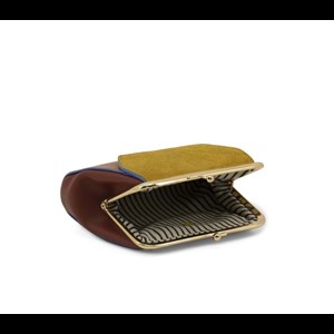 Sticky Sis Club Pung Coloré er en bøjlepung i et klassisk look og i en flot farvekombination. Pungen er lavet af PU og ægte ruskind, stribet canvas foring samt flotte detaljer af guld farvet metal. Obs – vi fraråder maskinvask. Denne pung renses bedst, og nemmest, med en våd klud. Vær opmærksom på at ruskindsprodukter kan forårsage afsmitning.
