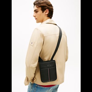 Denne Tommy Hilfiger crossover taske til herre kombinerer et klassisk og moderne design med praktisk funktionalitet. Tasken er fremstillet i struktureret materiale, der giver et eksklusivt og stilrent udtryk, mens den karakteristiske lodrette stribe og det diskrete logo på fronten understreger brandets ikoniske stil. Den justerbare skulderrem sikrer god komfort, og tasken har plads til de vigtigste ejendele som mobil, pung og nøgler. En tidløs crossbody taske, der er ideel til både hverdag og fritid.