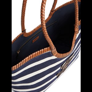 Denne stilfulde shopper har et klassisk stribet design, der giver et tidløst og sommerligt udtryk. Tasken kombinerer tekstil med fine detaljer og har behagelige hanke, som gør den nem at bære over skulderen. Den rummelige størrelse gør den ideel til både hverdag, shopping og udflugter. En alsidig taske, der forener funktionalitet med et eksklusivt look.