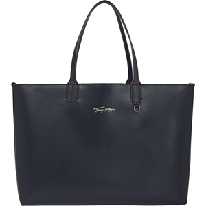 Klassisk og tidløs tote bag fra Tommy Hilfiger med logo på fronten. Tasken er fremstillet af 100% polyurethane og måler 31.5 x 49.0 x 13.5. Passer til de fleste outfits og kan bruges både til shopping, hverdag og arbejde.