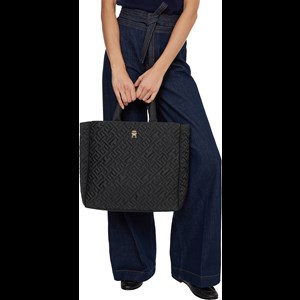 En rigtig fin tote bag fra Tommy Hilfiger med aftagelig skulderrem, materialet er i blødt logosyet stof og den kan lukkes med lynlås i toppen.