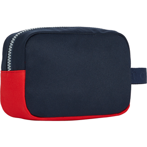 Smart toilettaske fra Tommy Jeans med logo på fronten, udvendig lynlåslomme og bærehank. Tasken er fremstillet af 100% genanvendt polyester. En perfekt toilettaske med plads til alle dine praktiske toiletsager.