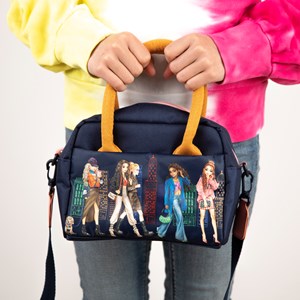 Lækker, lille håndtaske i flot urban city midnatsblå med fængende farvedetaljer og med motiv af fem TOPModeller i casual trendy stil fra CITY GIRLS serien. Tasken har lynlåslukning, kraftige bærehanke og en aftagelig og justerbar skulderrem med refleksdetaljer