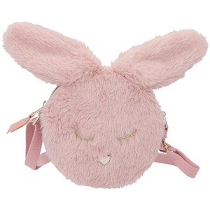 Den fineste lille runde skuldertaske i pink plys fra Princess Mimi er blød som en kanin og har lange hængeører og det sødeste kaninansigt broderet i guldfarve. Tasken har lynlåslukning og justerbar skulderrem.