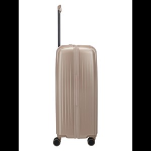 Den rummelige Novelty kuffert i stor størrelse fra Barbara & travelite kollektionen er det oplagte valg til dig, der skal på længere rejser og har brug for ekstra plads. Den er fremstillet i robust og ridsefast polycarbonat, som beskytter dine ejendele mod stød og slid. Fire letløbende dobbelthjul, et låsbart teleskophåndtag, et praktisk bundhåndtag og en integreret TSA-kombinationslås sikrer høj komfort og sikkerhed under hele rejsen. Indvendigt er kufferten udstyret med tre lynlåslommer, elastiske pakkestropper med gyldne detaljer, en aftagelig smykkepose og en separat pose til sko eller vasketøj. Foeringen er lavet af genanvendt polyester. Novelty forener luksus, funktion og fleksibilitet, alt det du har brug for på rejsen.