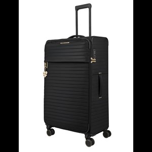 Den elegante og funktionelle Stepp-kuffert er designet til rejsende, der ønsker en kombination af stil, stabilitet og holdbarhed. Den er fremstillet af 100% genanvendt nylon og polyester, hvilket gør den både slidstærk og praktisk i brug. Det låsbare teleskophåndtag, det praktiske bundhåndtag og de fire letløbende dobbelthjul sikrer en stabil og behagelig rullekomfort, uanset hvor turen går hen. Den integrerede TSA-kombinationslås beskytter dine ejendele og opfylder kravene ved indrejse til bl.a. USA og Canada. Inde i kufferten er der smarte opbevaringsløsninger som elastiske pakkestropper med gulddetaljer, en separat pose til sko eller vasketøj og en aftagelig smykkeboks. De to lynlåslommer giver ekstra opbevaringsmuligheder. Med sit elegante design, flotte metaldetaljer og en dekorativ nøglering er Stepp mere end bare en kuffert – den er din perfekte rejsemakker.