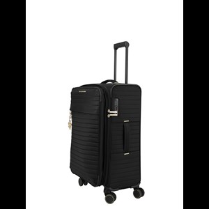 Den elegante og funktionelle Stepp-kuffert er designet til rejsende, der ønsker en kombination af stil, stabilitet og holdbarhed. Den er fremstillet af 100% genanvendt nylon og polyester, hvilket gør den både slidstærk og praktisk i brug. Det låsbare teleskophåndtag, det praktiske bundhåndtag og de fire letløbende dobbelthjul sikrer en stabil og behagelig rullekomfort, uanset hvor turen går hen. Den integrerede TSA-kombinationslås beskytter dine ejendele og opfylder kravene ved indrejse til bl.a. USA og Canada. Inde i kufferten er der smarte opbevaringsløsninger som elastiske pakkestropper med gulddetaljer, en separat pose til sko eller vasketøj og en aftagelig smykkeboks. De to lynlåslommer giver ekstra opbevaringsmuligheder, mens den praktiske udvidelsesfunktion giver dig mere plads efter behov. Med sit elegante design, flotte metaldetaljer og en dekorativ nøglering er Stepp mere end bare en kuffert – den er din perfekte rejsemakker.