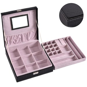 Hold dine smykker organiseret og beskyttet med UNIQ 2-lags smykkeskrin. Dette elegante smykkeskrin er designet med to praktiske opbevaringslag, der gør det muligt at opbevare både dine små og større smykker på en effektiv og stilfuld måde. Det er fremstillet af holdbart materiale med en sofistikeret sort krokodillepræget overflade, der giver det et luksuriøst og tidløst udseende. Indvendigt finder du et blødt rosa velourinteriør, der beskytter dine smykker mod ridser og skader. Skrinet har flere separate rum, som er perfekt til opbevaring af ringe, halskæder, øreringe og armbånd. Det øverste lag er ideelt til de små smykker, mens det nederste lag giver ekstra plads til opbevaring af større smykker. Det praktiske design gør smykkeskrinet ideelt til både daglig opbevaring og rejser, da det er kompakt og nemt at transportere.
