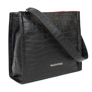 Denne 'Juniper' taske fra Valentino har en tofarvet farvekombination med sin croco-effekt PU sort udvendigt og polyesterrødt interiør. Dens interiør er rummelig nok til at passe til dine væsentlige ting såsom dine nøgler, pung og telefon. Valentinos varemærke er præget på forsiden i guld-effekt hardware.
